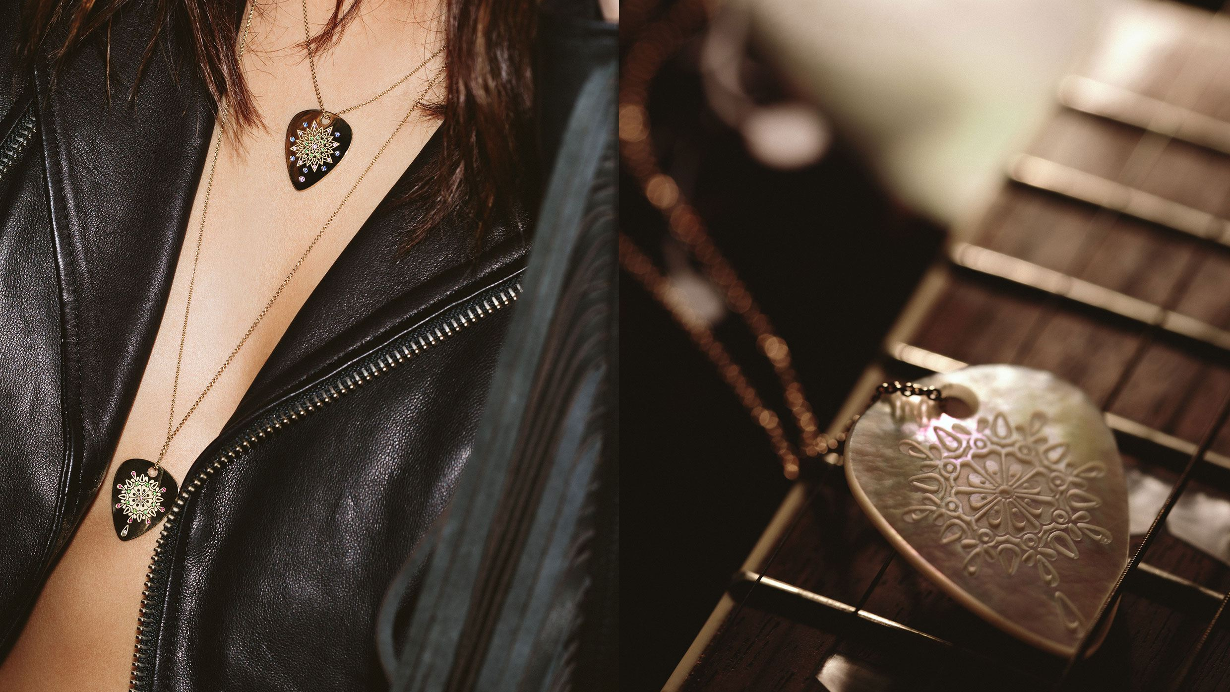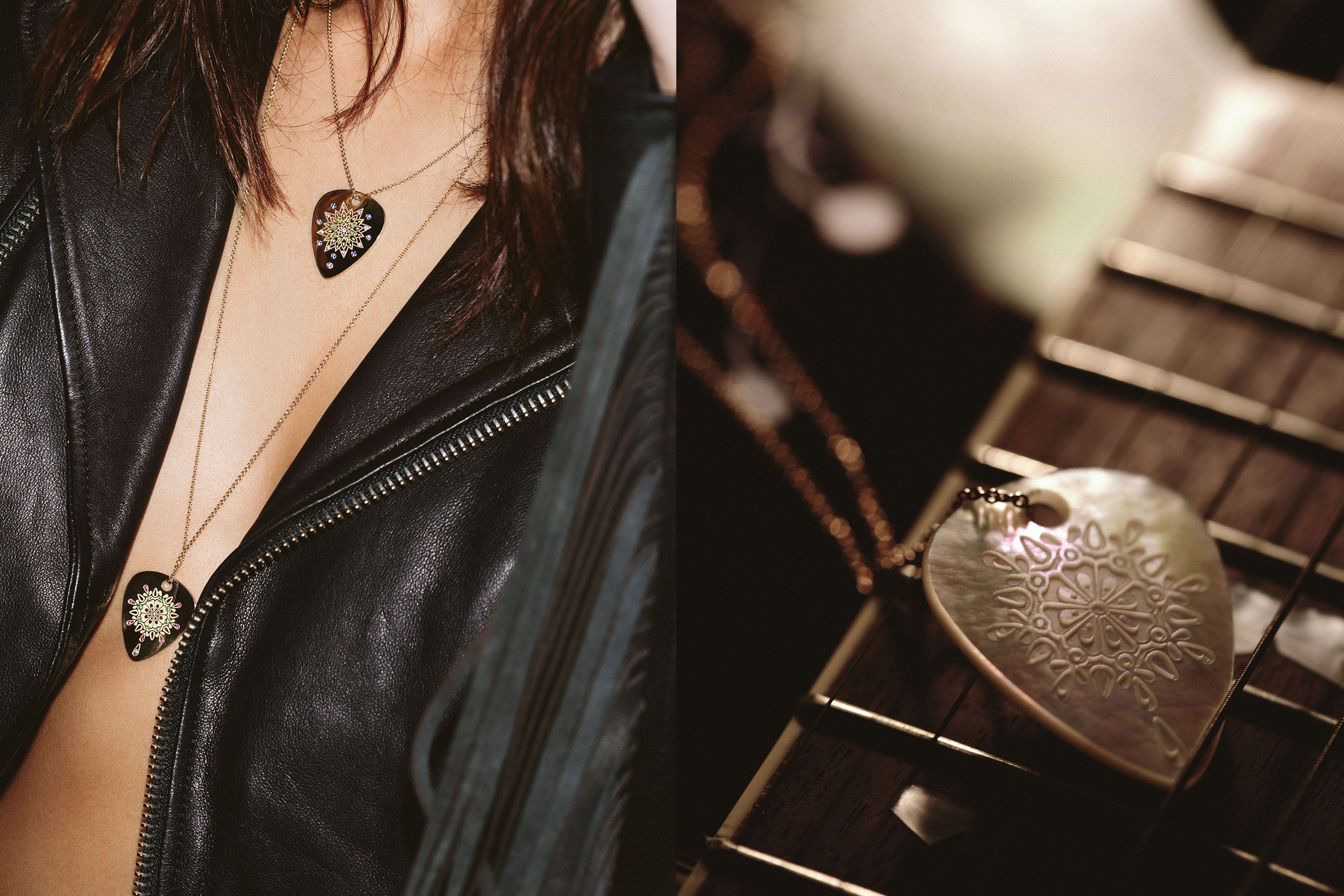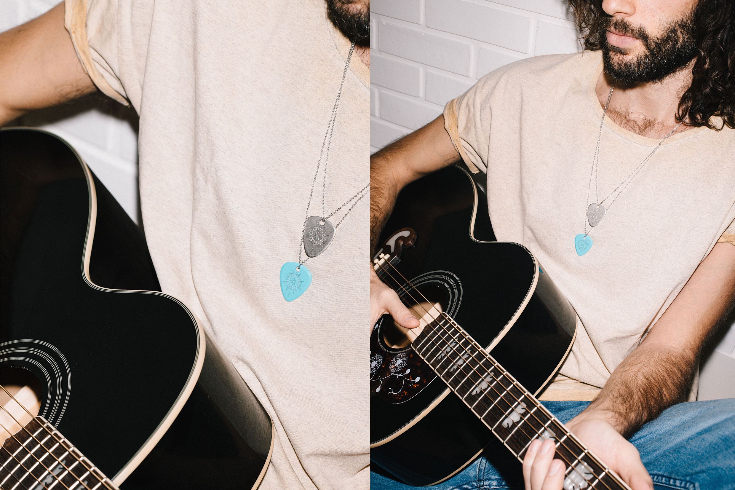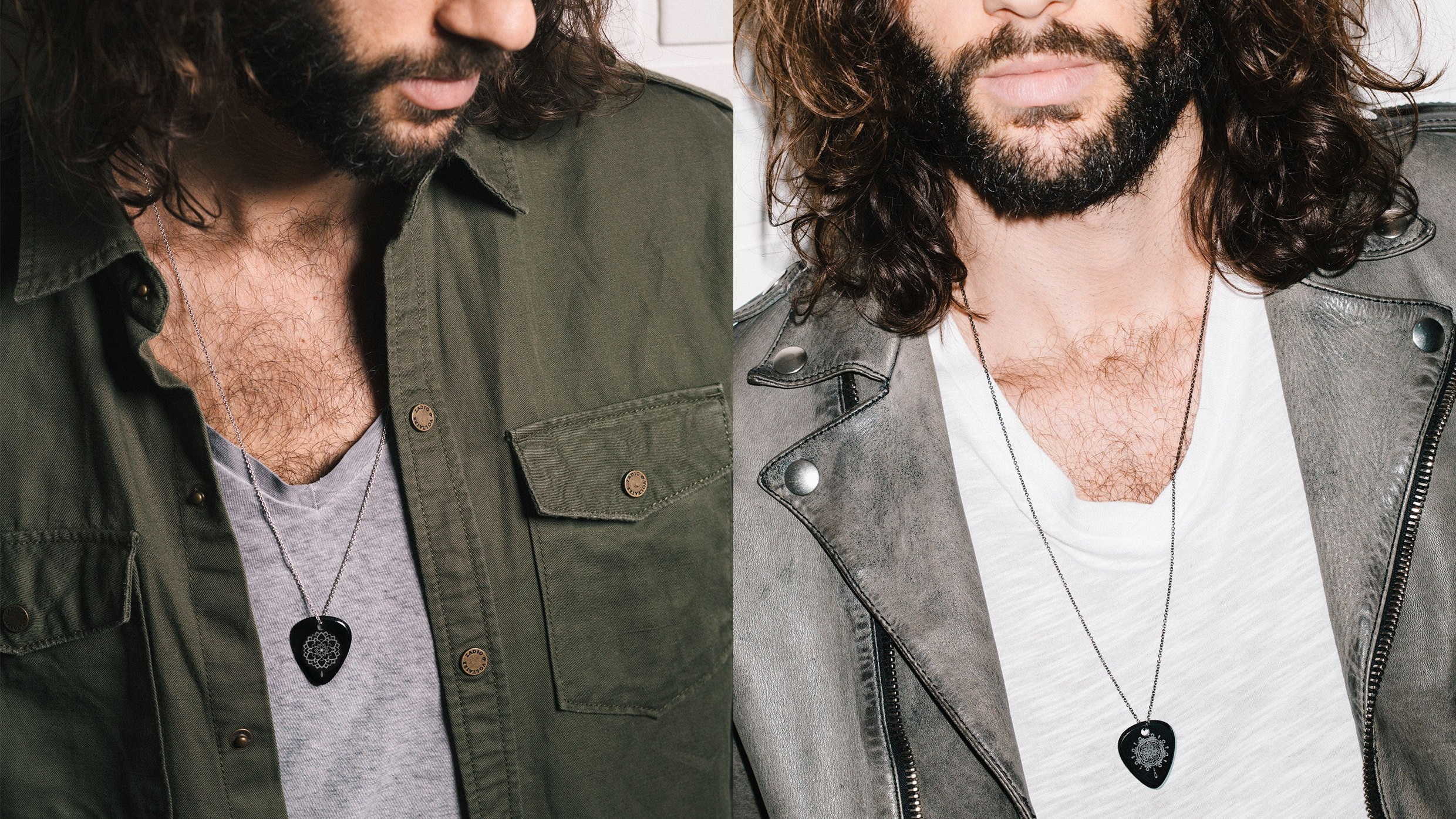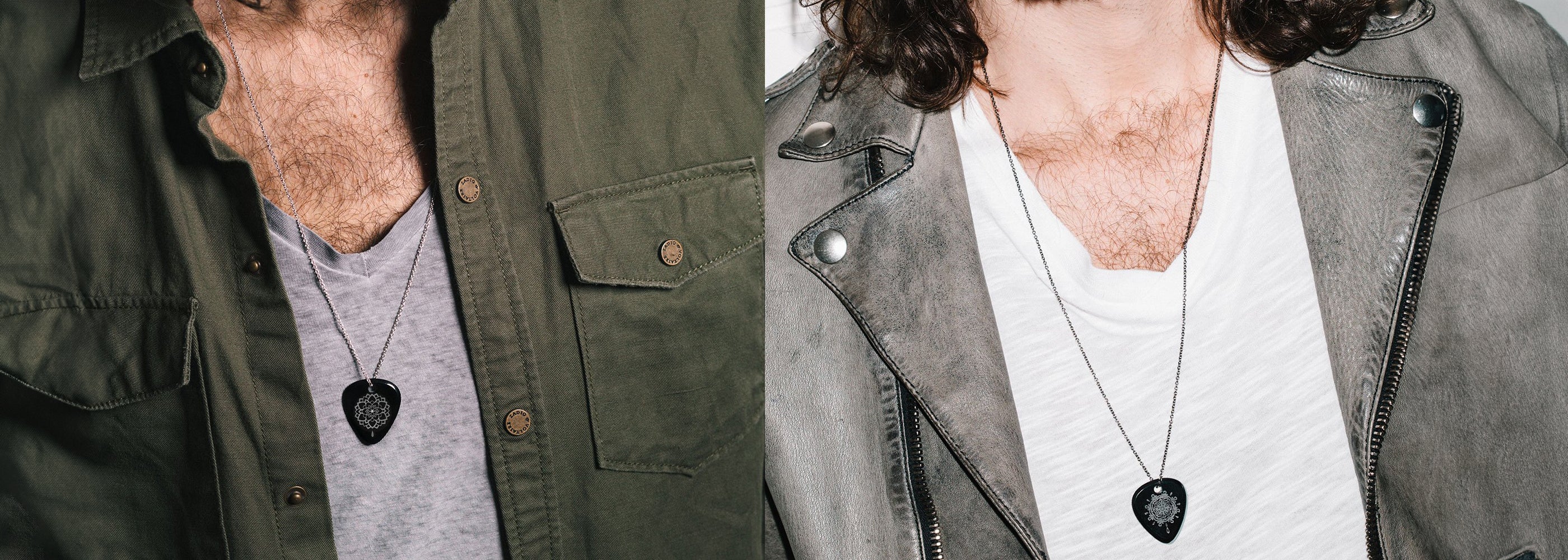 The Mandalic is a cosmic Mandala engraved on a guitar pick pendant. The word Mandala means “sacred circle” and symbolizes being one with life, going with the flow and reflecting inward.