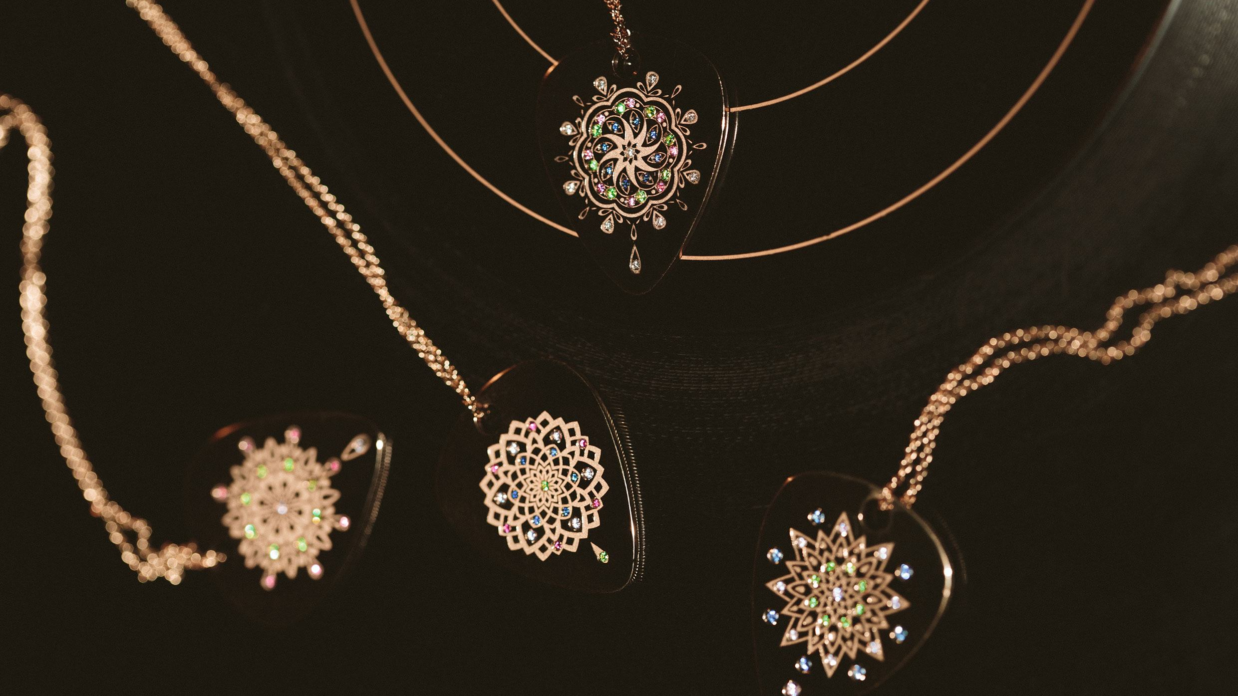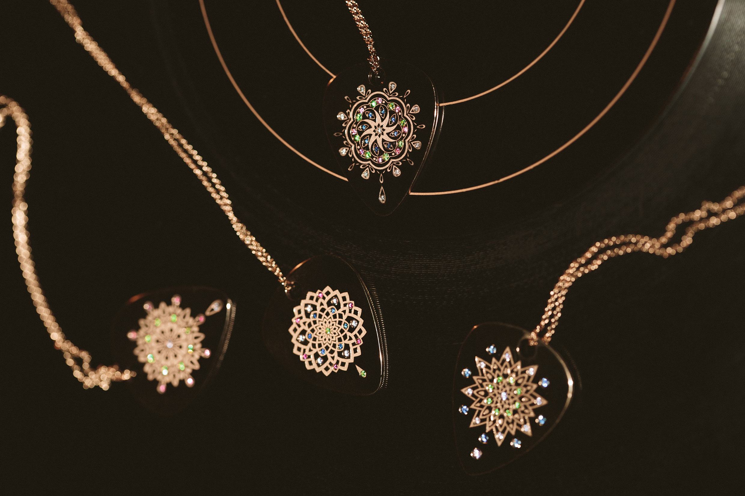 The Mandalic is designed for both men and women who feel connected to music & spirituality. Each of them reinforces a spiritual & specific meaning offering protection and healing to its owner. They are laser carved or engraved on different materials such as 18 kt gold, a colourful choice of titanium, silver and various gemstones. All can be mixed and matched. For a more glamourous look, the “Psychedelia Mandalic” are available with a choice of colourful saphires or diamonds set in 18kt gold. A Jenny Dee tarot card is given with each Mandalic as a token of its power and symbolism.